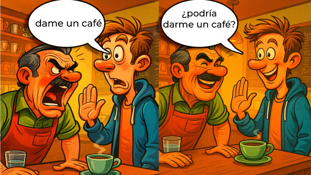 W hiszpańskim wystarczy zmienić jeden czasownik, żeby zdanie brzmiało zupełnie inaczej. Zamiast brzmieć bezpośrednio czy nawet niegrzecznie, możemy mówić uprzejmie i naturalnie. To ogromna zaleta, zwłaszcza jeśli uczysz się hiszpańskiego na kursie hiszpańskiego i chcesz szybko zacząć rozmawiać w praktycznych sytuacjach.