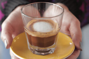Espresso z niewielką ilością mleka, które łagodzi mocny aromat kawy, nie dominując nad nim. Świetna propozycja dla osób szukających równowagi.